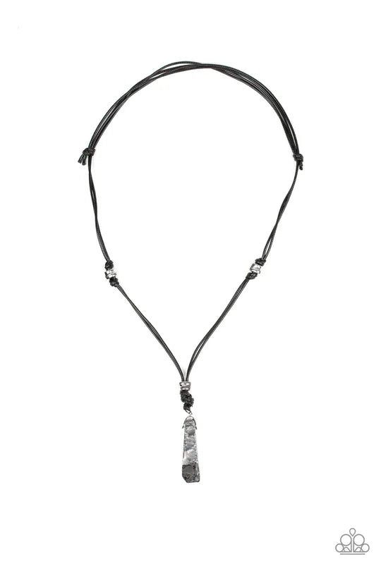 Infused with antiqued copper beads, a chunk of coppery hematite swings from the bottom of a lengthened strand of black leather cording, creating an urban pendant. Features an adjustable sliding knot closure. Size may vary.